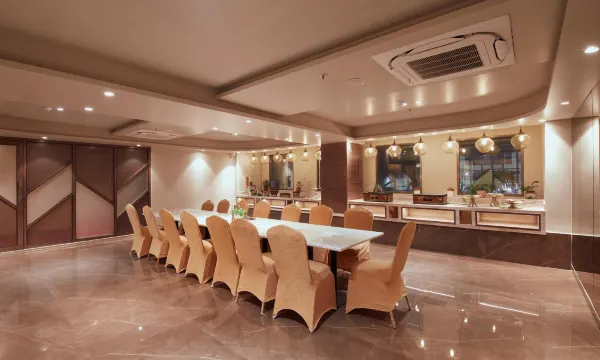 Experience an abundance of unparalleled facilities and features at Rudraksh The Hotel. Maintain seamless communication using the complimentary Wi-Fi at hotel.Effortlessly arrange transportation to and from the airport using the hotel's airport transfer services.For extended visits or whenever required, the laundry service ensures your preferred travel garments remain fresh and accessible. During leisurely days and evenings, on-site amenities such as daily housekeeping enable you to fully enjoy your accommodation.At Rudraksh The Hotel, every guestroom is provided with convenient amenities and fittings to ensure a comfortable stay.Elevate your experience at hotel with the knowledge that certain rooms are equipped with air conditioning, ensuring a more pleasant stay for you.In select rooms within the hotel, a coffee or tea maker, bottled water and mini bar is available to cater to your requirements when desired.It is worth noting that certain guest bathrooms feature a hair dryer and toiletries for your convenience. Begin your day carefree at Rudraksh The Hotel, as complimentary breakfast is offered for your convenience.