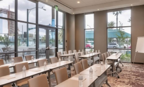 Start your day right with Hampton's free, hot breakfast served every morning. Pick up snacks and essentials at our convenience store, or enjoy free coffee and tea service in the lobby. Work out in the 24-hour fitness center or swim laps in the outdoor pool. We also have a business center and guest laundry room, both open 24 hours for your convenience. Our flexible meeting space offers 576 sq. ft. perfect for meetings and small gatherings.
