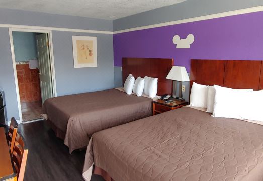 Our rooms are thoughtfully designed for convenience, featuring fast Wi‑Fi, air conditioning, mini‑fridges, microwaves, and free parking — essentials that help families and travelers save more during their stay. We’re close to major attractions, yet tucked in a quiet area that allows guests to relax after a long day at the parks.