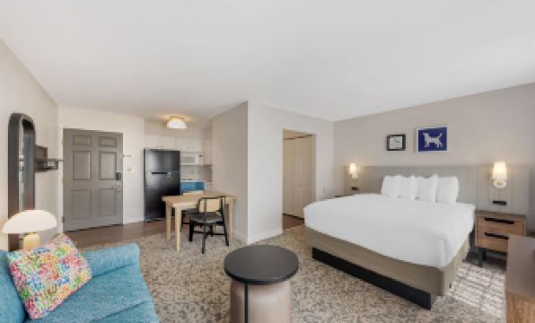 Make yourself at home in one of the 121 air-conditioned rooms featuring kitchens with refrigerators and stovetops. Complimentary wireless internet access keeps you connected, and 50-inch flat-screen televisions are provided for your entertainment. Conveniences include desks and microwaves, as well as phones with free local calls.