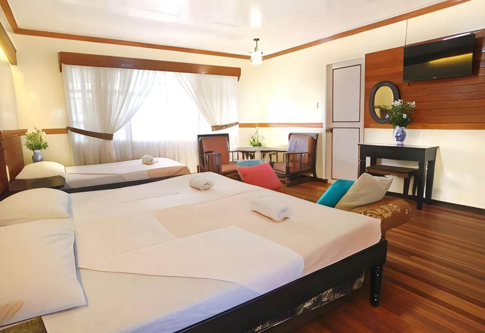 Nice place, very convenient and approachable staff. The room is big enough for us though the water is not that malakas but still ok,. The food is just ok ☺️ but still can recommend.