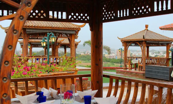 Beautiful place, spacious clean rooms. Helpful staff The resort is located in a large hilltop garden next to a shopping center. Different categories of rooms are spread in different areas of the garden. Heritage rooms (501 - 512) are far away from reception and restaurants. Rooms 601 - 606 are closer and a better category. Premium cottages are in a separate area. There are adjacent rooms near the gym and the reception area too. We stayed 2 nights in room 606 and it was spacious, clean and well furnished. All the rooms are airconditioned with a mini-fridge and complimentary Tea/ coffee. The bed was comfortable and well furnished had a separate closet area and a modern bathroom. Hot water was working well and the water flow was good. WiFi was fast. On request a golf cart (buggy) is sent to move you within the resort. The GM, Mr. Pappy Bharti is personally interacting with guests attending their needs and also giving explanations and information. The resort is vegetarian. Even no eggs available. Breakfast was reasonable with fruits, juices, tea, coffee with several vegetarian dishes. We ordered room service lunch but not much impressed about the quality or the prices. There are several restaurants just outside the resort in the shopping area. The shopping area is still developing with shops, restaurants, saloons etc. It is not allowed to get outside food delivered directly to rooms. If you order anything online it will be delivered to the main gate. You can go in the buggy and collect it or ask the reception to collect it and deliver to your room. There are many domestic tourists, mainly families or groups and few foreigners in the resort. As a foreigner, communication with staff is sometimes cumbersome. You may have to ask same thing several times even to different people to get it done. If you have issues better to talk directly with the GM and he will attend to it quickly. We had some miscommunication at the checkin but it was quickly resolved and our stay was smooth and comfortable. I recommend this resort.