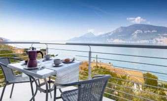A top apartment with a fantastic panoramic view of Lake Garda. The apartment is located in an old olive grove about 50m above Lake Garda. It is only approx. 200m to the first swimming opportunity and the new lakeside cycle path leads right along here. Fro