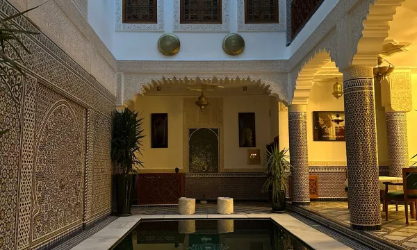 I had an exceptional stay at this beautiful riad in Fes! The decor is immaculate, showcasing stunning Moroccan craftsmanship with artisanal furniture that gave the room a warm, authentic charm. My air-conditioned room was incredibly comfortable, perfectly blending traditional style with modern convenience. The ladies at the front desk were outstanding—friendly, attentive, and always ready to assist with a smile. The complimentary breakfast was a delightful touch, offering a delicious start to the day. Highly recommend this riad for an unforgettable experience in Fes!