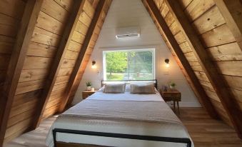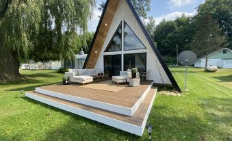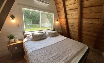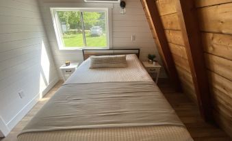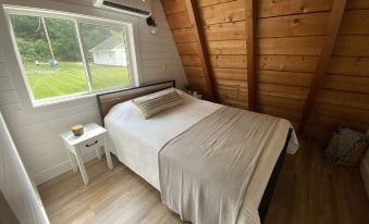 Experience the MontCalm A-frame and let the stress melt away. The MontCalm A-Frame sleeps 4. The loft above has a king bed that features breathtaking views of lake Montcalm. Below is a queen bedroom. The oversized deck along the lake gives you the perfect platform to watch breathtaking sunsets that the lake is so famous for. From top to bottom the property has been completely renovated, designed to enhance relaxation.