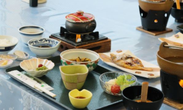旅行支援で宿泊。一泊二食付き。夕食は刺身定食・天婦羅定食選択で部屋はお任せの一番お安いコース。建物・設備ともに古く老朽化かいかんともしがたい。案内された部屋は8畳の和室に縁側と3畳程度の前室がついている。個別空調のエアコン、リモコン付き照明、温水洗浄便座付きトイレで建物が古いという以外はすごく快適。二人には広すぎるくらい。窓は三瓶と反対方向についていて夕日はきれいに見える。食事の間に従業員が布団を敷いてくれるシステム。温泉は施設が古く洗い場には仕切りがない。湯温が高く泉質が酸性なのか入浴後に手が荒れてハンドクリームを塗るほど。ゆっくりと入浴を楽しめる温泉施設ではない。旅行支援でほぼ満室だったらしく、団体客は大広間での夕食のよう。私達個人客は食堂で部屋番号が示されたあらかじめ料理が載っているテーブルに案内されて食事。コロナ禍で最小限にした職員で一度に増えた旅行支援客をこなすためには、あらかじめ作り置きした料理であるのは致し方ない。女性2名と若い男性1名が、かいがいしく動いている。まあ、こうした施設では料理に多くを期待する方が無理というものだが、値段の割には見栄えのする暖かい皿もある夕食で、満足度は高かった。私達は三瓶山登山後の宿として利用したが、ゆっくり温泉で休み料理なども楽しみたいという目的には合わないかも。快適にはしているが、建物・設備の老朽化はいかんともしがたく、周囲にこれといった娯楽施設もない。登山や島根県立三瓶自然館サヒメルの利用、近隣のハイキングの基地として利用するなら、利用価値大だろう。