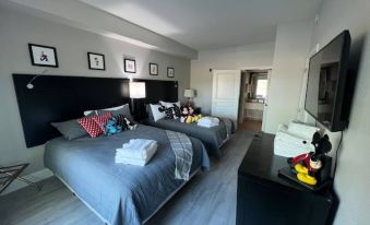 1st floor * FREE SHUTTLE * EPIC, DISNEY * UNIVERSAL & SEA WORLD * FREE PARKING * NO RESORT FEE* Margarita Machine * Coffee Bar * Kitchen * Private 1 bedroom Suite * 1 Bath * 1 King bed * 1 Queen Bed * Adjustable Base Beds! Disney Springs 2 miles, Universal & Epic 6 miles * Heated Pool * Hot Tub * Gas BarBQ Grills & Pizza Oven * On Site Stroller Rental * Onsite Laundry * Ice Machines * Basketball * Game Room * Walk to Restaurant's & Shopping * Plush towels & Linens * MCO 20 Minutes Super Host!