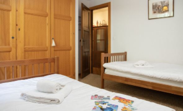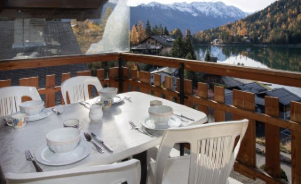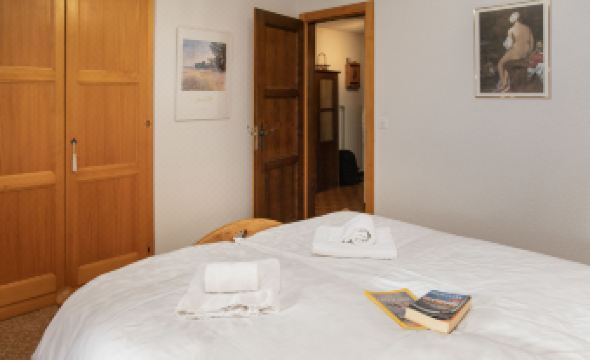 Beautiful apartment block "Parc", surrounded by trees. In the centre of la station, 30 m from the edge of the forest, 100 m from the lake, in a cul-de-sac. In the house: lift, storage room for skis, central heating system. Motor access to 50 m from the house. (10 steps). Public parking 850 m. Shop 200 m, restaurant 100 m, bakery 350 m, bus stop 50 m, outdoor swimming pool 1 km. Tennis 300 m, cable car 850 m, ski school 300 m, ski-kindergarten 350 m, ice rink 800 m, children's playground 600 m, fishing possibilities. "Parc B 431", 3-room apartment 75 m2, on the top floor. Practical and comfortable furnishings: living/dining room with open-hearth fireplace and cable TV. Exit to the balcony. 1 room with 1 french bed. 1 room with 2 beds. Kitchenette (oven, dishwasher, electric coffee machine, Capsules for coffee machine (Nespresso) extra, raclette grill, fondue Set (cheese)). Bathroom. Balcony furniture. Beautiful view of the lake and the mountains. Facilities: Internet (WiFi, free). Parking space n 13 (roofed) at the house. Please note: non-smokers only. Maximum 1 pet/ dog allowed.
