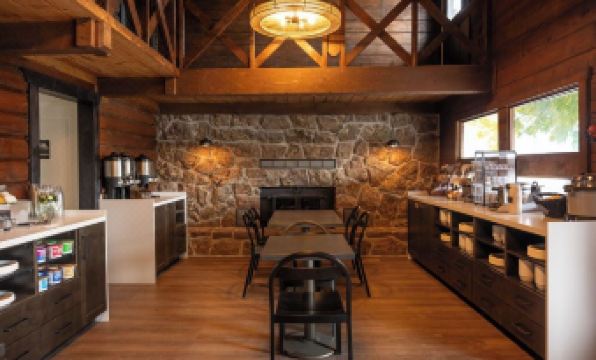 This lodge is beautiful! Our family was passing through town after a week’s vacation through several other states and decided we should stay and got a room last minute. It’s just a little bit out of town. They were so easy to work with. We walked in and our 15 year old son said, “I want to stay here forever!” It’s so clean, nice and spacious. The beds are comfortable. The linens are thick and clean, and not thin and small like other hotels. We didn’t have time to cook there or to enjoy any meals there or the other amenities, but it was all beautiful and the couch was comfortable. It has platform beds, which we aren’t used to, but it was more comfortable than I thought it would be. The only thing is that it’s right on the highway, so there were trucks that were loud driving by in the morning and we slept in. The tub/shower and toilet room was a little small, but it’s manageable. And that’s about it. There’s a double sink vanity which was great for us getting ready this morning. Hair dryer, steamer, plenty of towels! Would definitely stay here again!