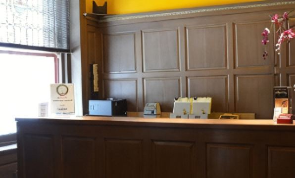 This hotel, situated closely to the UPenn hospital, provided excellent rooms. They were very clean, freshly painted, and offered an excellent street view from the upper floors. The day we arrived, all the blinds on the entry and lounge area were closed, making it seem very dark and dreary. As the day warmed up to a very hot afternoon, I think they tried to reduce the indoor temperature by keeping the windows covered. The darkness did give off a negative impression at first, but I understand why they did it.