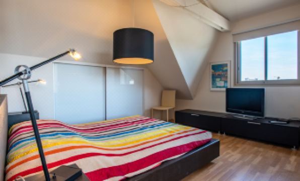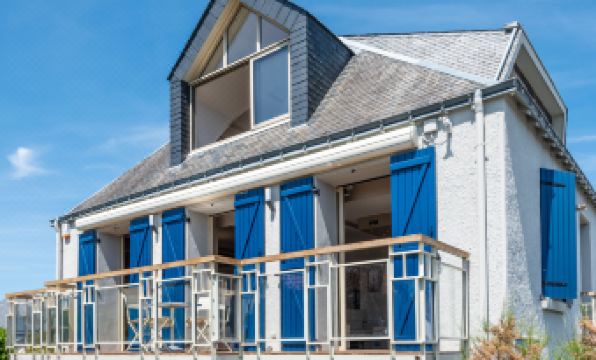 2-family house "Les Néréïdes", 15 m a.s.l., 2 storeys. Property composed of main house and outbuilding, in the centre of Quiberon, excellent location: right in the centre but still quiet, 50 m from the sea, 50 m from the beach. Parking (for 2 cars). Shop 100 m, supermarket 500 m, restaurant 100 m, 5 minute walk to the centre, bus stop 300 m, sandy beach "Grande Plage de Quiberon" 100 m, indoor swimming pool 900 m, thermal baths "Thalassothérapie de Quiberon" 1.5 km. Sports harbour 2 km, golf course (9 hole) 1 km, surf school 8 km, sailing school 2 km, tennis 1 km. Nearby attractions: Casino 1 km, Côte sauvage et Presqu'ile de Quiberon 500 m, Belle île en Mer, Houat, Hoedic, Carnac et les Alignements 20 km, Vannes 50 km, Lorient 60 km. Hiking paths: Golfe du Morbihan. The keys‘ handover takes place by the agency Interhome in Quiberon, 1 km. 5-room maisonette 120 m2 on 1st floor, south facing position. Comfortable and stylish furnishings: living/dining room with open-hearth fireplace. Exit to the terrace. 1 room with 2 beds (80 cm, length 200 cm). 1 room with 1 french bed (1 x 160 cm, length 200 cm). Kitchen 10 m2 (oven, dishwasher, 4 induction hot plates, microwave, freezer, grill, electric coffee machine, Capsules for coffee machine (Nespresso) extra). Exit to the terrace. Bathroom, sep. WC. Upper floor: lounge with TV (flat screen). 1 room with 1 french bed (1 x 160 cm, length 200 cm), TV (flat screen). 1 room with sloping ceilings with 1 bed (120 cm). Bath/WC. Electric heating, gas heating. Small terrace 10 m2, south facing position. Terrace furniture. Beautiful view of the sea. Facilities: washing machine, dryer, hair dryer. Internet (WiFi, free). Parking (2 cars). Please note: non-smokers only. Smoke alarm. 56186 000574 98