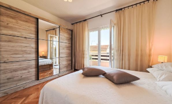 Turanj 1 km from Sv. Filip i Jakov: 3-family house "Ana". 100 m from the centre of Turanj, 5 km from the centre of Biograd, 200 m from the sea, 200 m from the beach. For shared use: property 400 m2 (fenced), garden with plants. In the house: internet access. Parking on the premises. Shop 150 m, restaurant 200 m, bus stop 120 m, pebble beach 200 m. "Ana", 4-room apartment 100 m2 on 1st floor. Living/dining room with satellite TV and air conditioning. Exit to the balcony. 1 room with 1 bed (90 cm, length 200 cm), 1 french bed (180 cm, length 200 cm). Exit to the balcony. 1 room with 1 french bed (160 cm, length 200 cm). 1 room with 1 french bed (160 cm, length 200 cm). Open kitchen (1 hot plate, oven, 3 gas rings, toaster, kettle, microwave, freezer, electric coffee machine). Shower/WC, sep. WC. No heating option. Balcony 10 m2. Balcony furniture. Facilities: washing machine (extra). Internet (WiFi, free). Please note: non-smoking house.