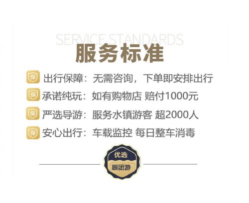 ▲ Service Standards: Travel Assurance: Premium services with high-rated shops/products. Pure Play Guarantee: Compensation of 1000 CNY if shopping stops are included. Rigorous Guide Selection: Serving over 2,000 visitors in water towns. Safe Travel: Vehicle monitoring and daily disinfection.