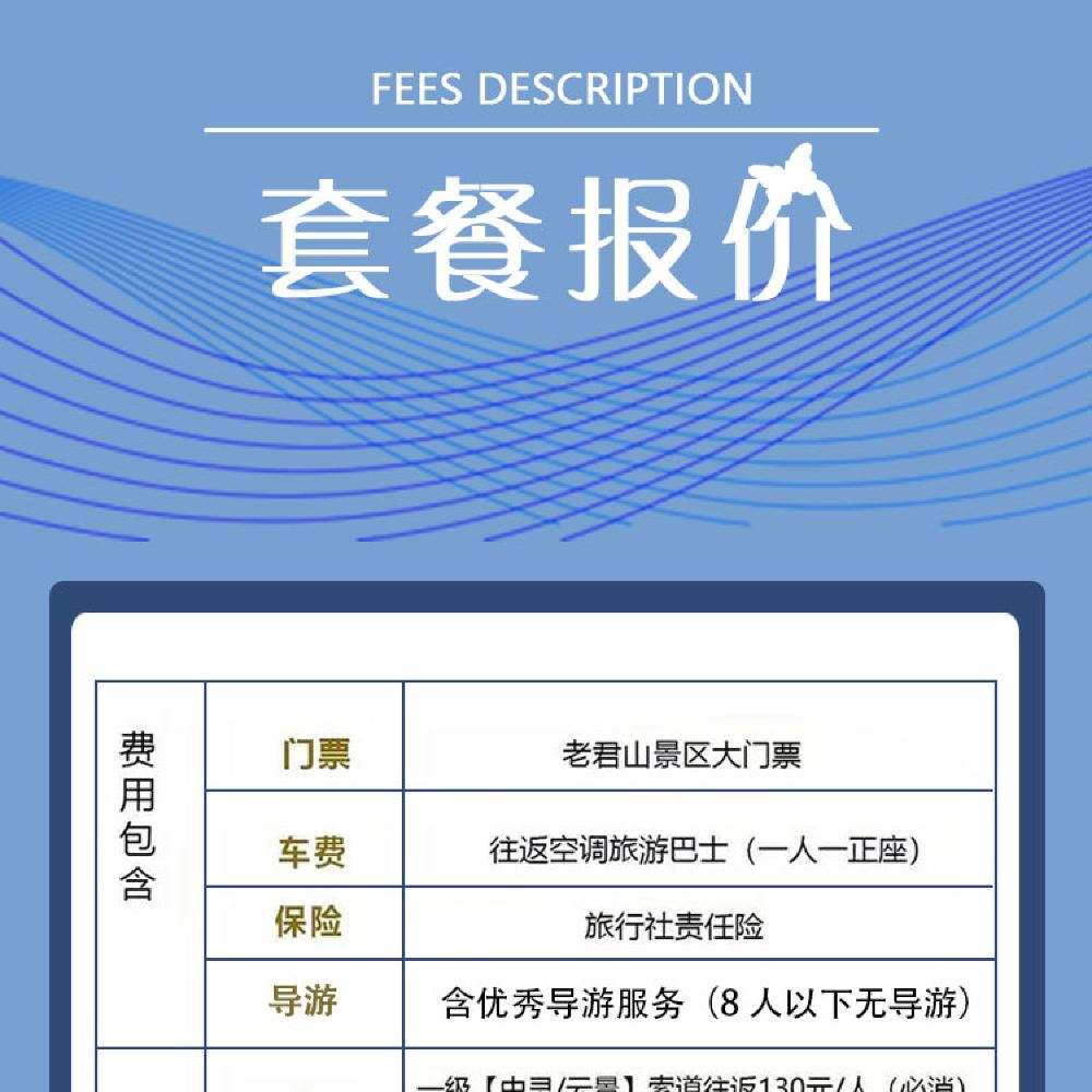 1. Laojun Mountain has two cableways. The first cableway (Zhongling/Yunjing run in parallel, take whichever is operating; the cost is included) goes from the foot of the mountain to Zhongtianmen on the mountainside. The second cableway, Fenglin Cableway, goes from Zhongtianmen to the entrance of Shili Hualang. If you need the second section, you can purchase it yourself at the attraction or have the guide purchase it for you.