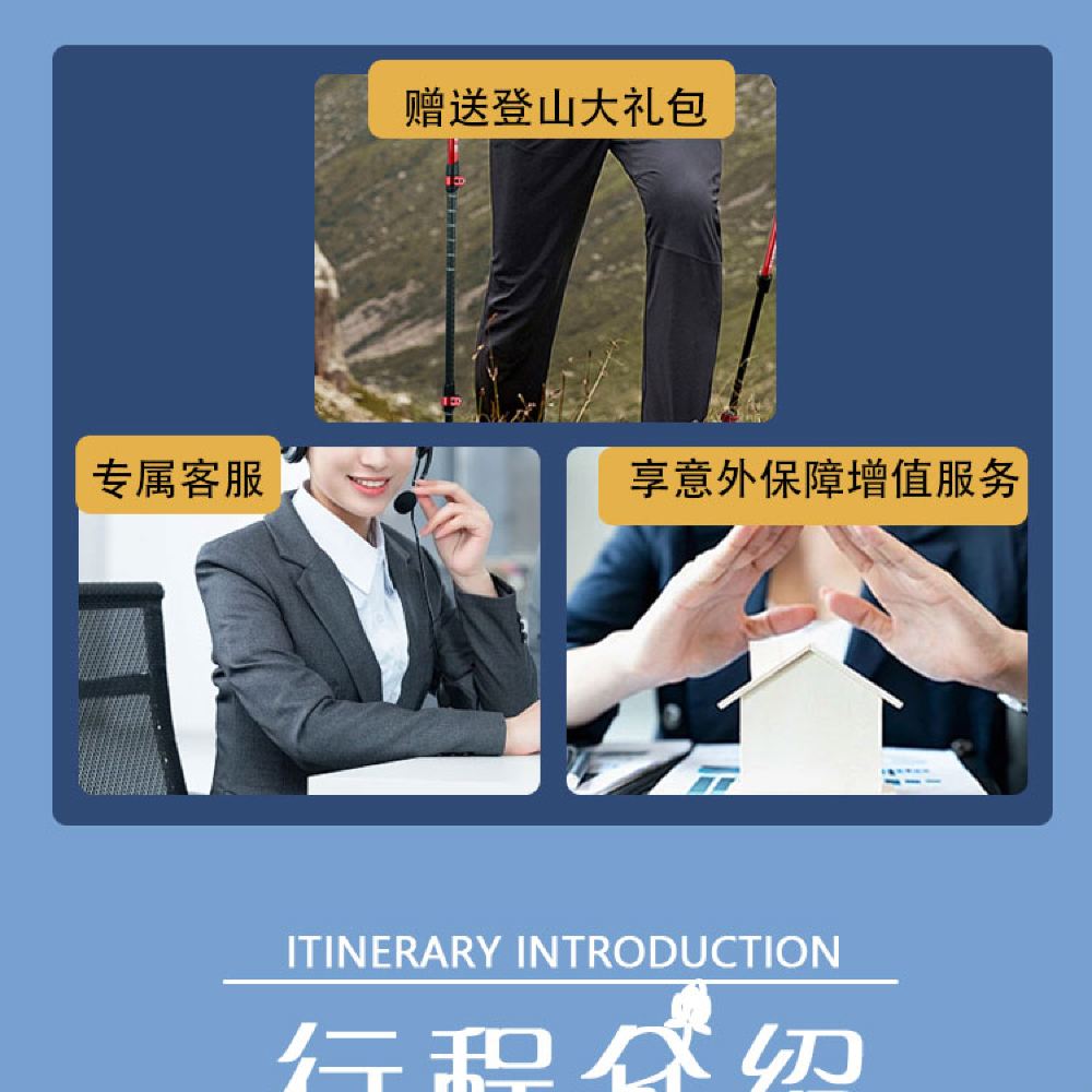 1. Business group of 15 adults package inclusions: round-trip transportation + admission ticket + first section round-trip cable car + guide service for the entire climb and guide + [trekking pole · prayer plaque · mineral water]