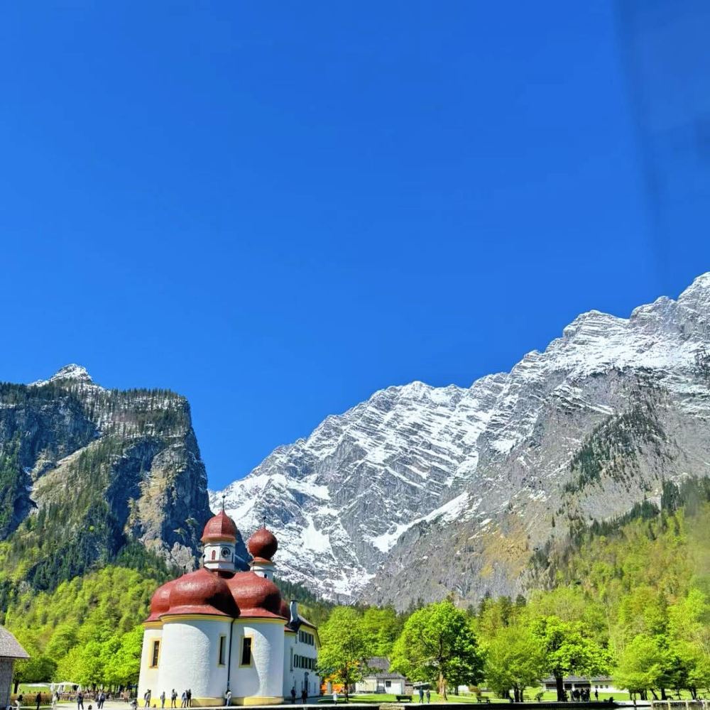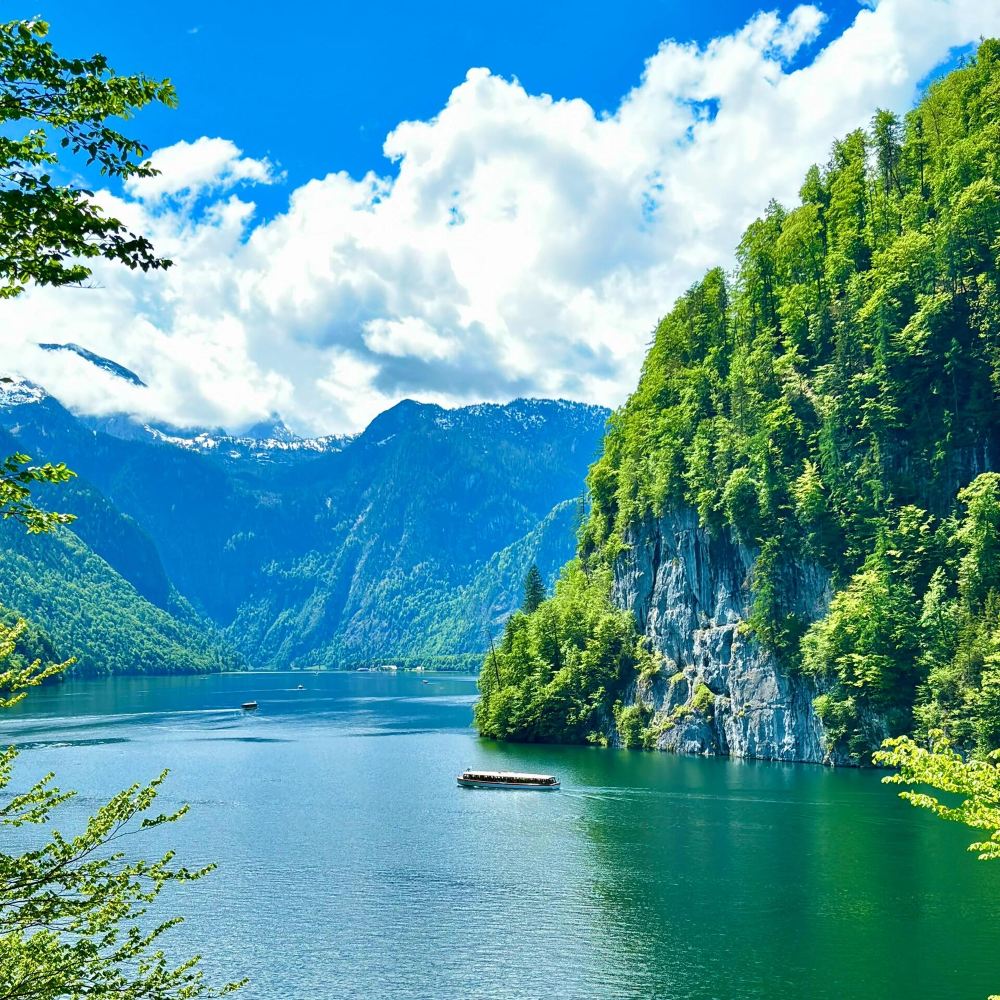 ▲ Departing from Königssee Seelände pier, the cruise makes three stops: Kessel, St. Bartholomä, and the final destination Salet. For better views, it's recommended to sit on the right side during departure and on the left side during return. Disembarking at the second stop, St. Bartholomä, allows you to visit the beautiful red-roofed St. Bartholomew's Church. At the final stop, a short walk leads to the inner lake Obersee and Röthbach Waterfall. For a panoramic view of the lake, ascend Jenner Mountain (Jennerbahn) located on its eastern side. From the summit, you can admire the entire lake along with the picturesque town of Berchtesgaden and the Alpine landscape in the distance.