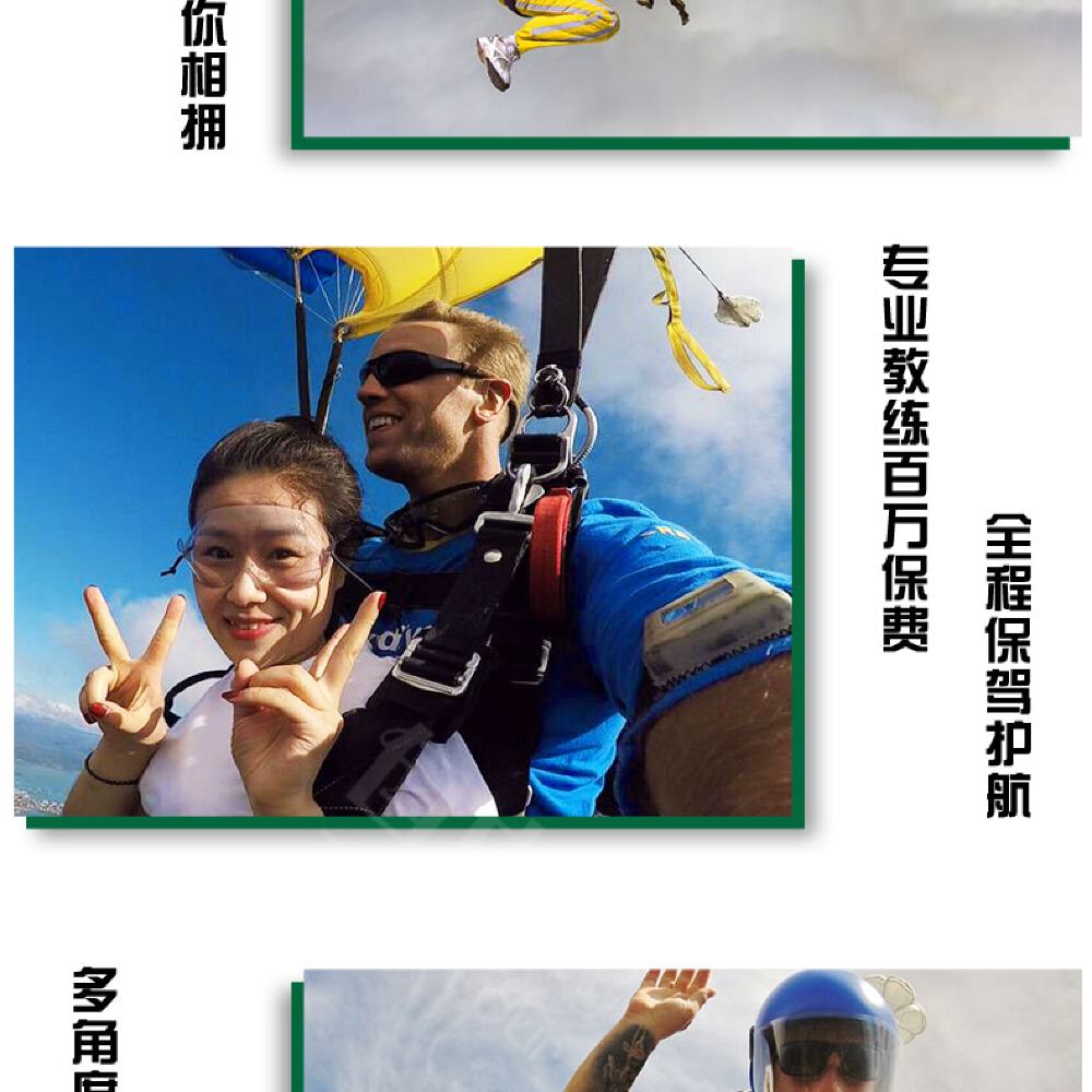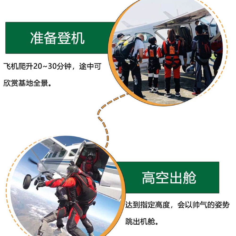 6. It is recommended not to consume excessive alcohol the night before skydiving and avoid eating too much before the activity. Skydiving is not allowed within 24 hours after diving. Pregnant women, individuals with a history of heart or brain diseases, severe hypertension, or other special conditions cannot participate in skydiving activities. If feeling unwell during the activity, please inform the instructor immediately.