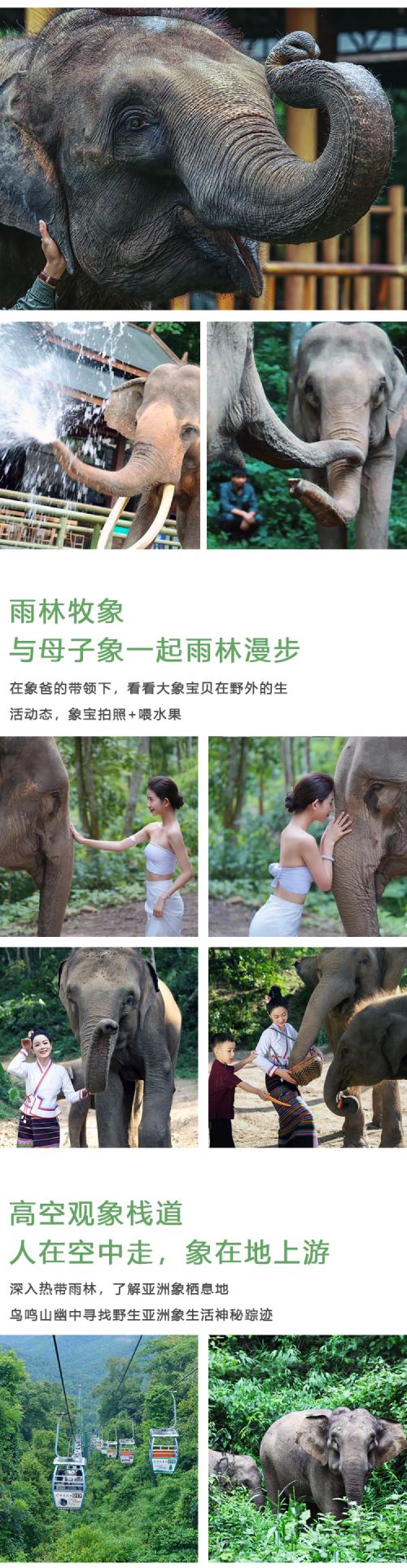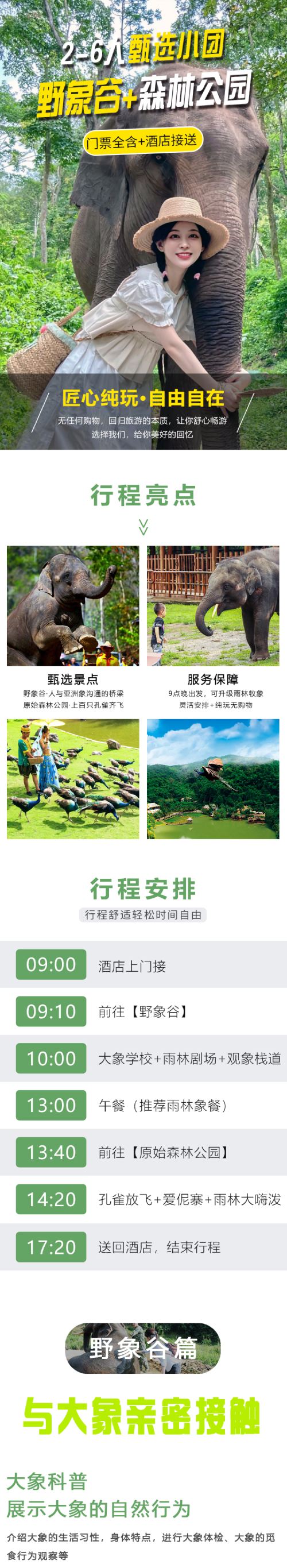 [Colorful Attractions] Get up close with elephants and interact intimately with mother-baby elephant pairs; witness the spectacular release of hundreds of peacocks; optional rainforest elephant herding experience.