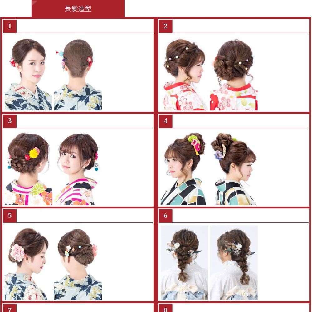 [Choose 1 from 8 Hairstyles] Select 1 from 8 available hairstyles. We recommend choosing a hairstyle service if your hair is 5 cm or longer below your ears. (Hair accessories are not included and can be purchased on-site.)