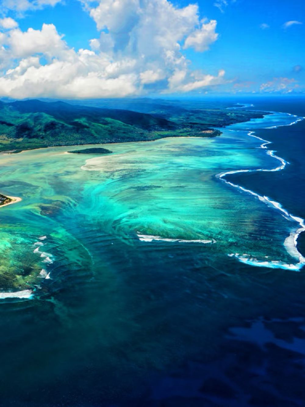 - Aerial panoramic experience: Beyond the underwater waterfall, the flight offers breathtaking views of Mauritius' diverse landscapes, including crystal-clear lagoons, lush mountains, vast sugarcane fields, and stunning coastlines, showcasing the island's unparalleled beauty.