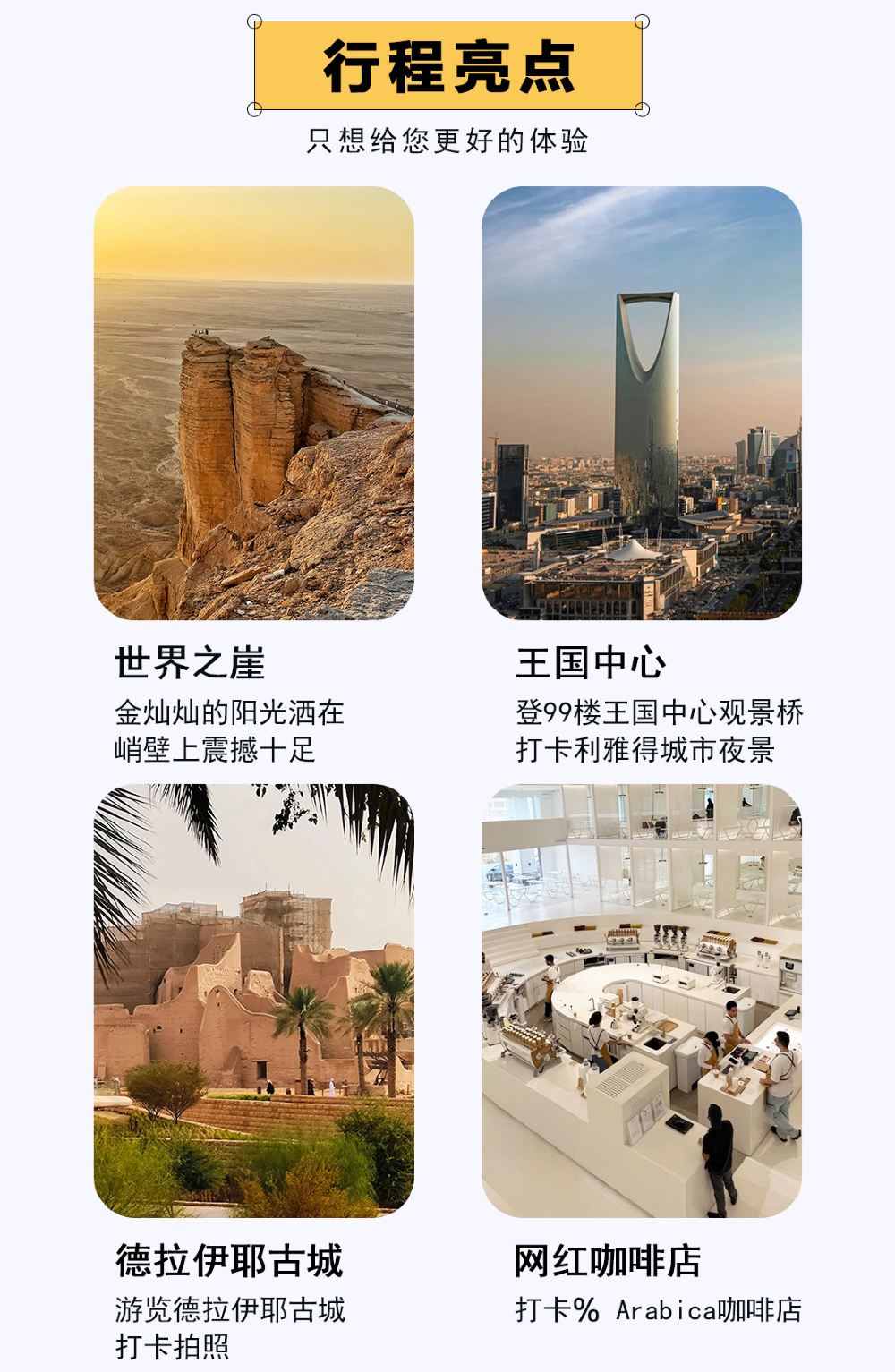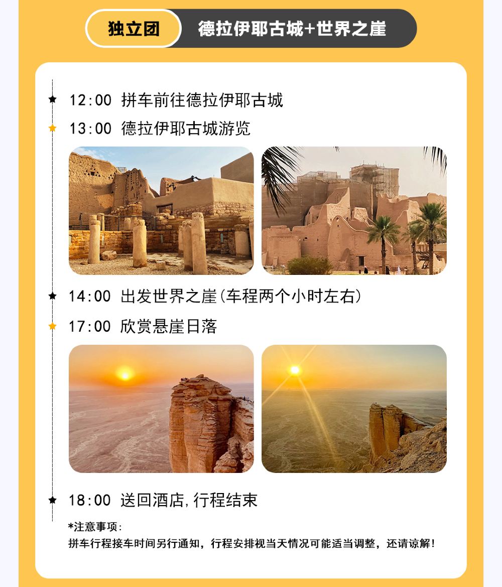 ![Saudi Arabia Riyadh Trip Moments[Driver-guide plus travel photography + wedding aerial photography microfilm + makeup & costumes + itinerary customization + unlimited group size]](https://ak-d.tripcdn.com/images/0352y12000qmywysuF039_C_568_320.jpg?_fr=wc)