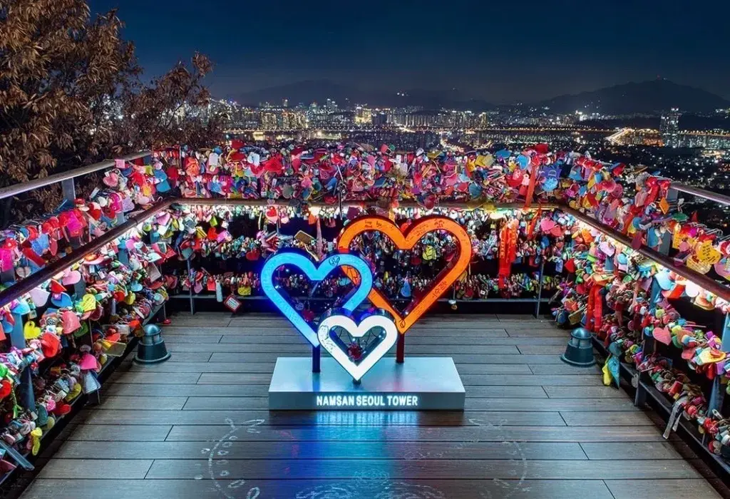 On the top of Namsan Mountain in Seoul, South Korea, stands the famous N Seoul Tower. It is not only a landmark building in Seoul, but also a great place to overlook this bustling city. That day, we chose to take a cable car to Seoul Tower. The cable car slowly climbed up, and through the window, the city scenery of Seoul gradually unfolded. Arriving at the bottom of the tower, the first thing that caught my eye was the lively square. Couples stopped in front of the love lock wall, hung the locks symbolizing love, and made an eternal vow. This romantic ceremony made people feel the romantic atmosphere of Seoul Tower. Step into the tower and take the elevator directly to the observation deck. The moment the elevator door opened, the magnificent panoramic view of Seoul unfolded like a scroll. Standing on the height, you can see all the high-rise buildings in Seoul, the Han River winds through the city like a silver ribbon, and the mountains in the distance are looming in the mist. As night falls and the lights come on, the night view of Seoul is even more beautiful. The lights and the night are intertwined, and the whole city seems to have become a dazzling starry sky, which makes people intoxicated and linger. Seoul Tower not only has charming scenery, but also rich entertainment facilities and cultural activities. The digital telescope in the tower can receive information from more than 60 places, giving us a deeper understanding of Seoul. In addition, the multi-functional stage under the tower will hold concerts every Friday, and there will be film festivals on weekends, providing tourists with more entertainment options. The time at Seoul Tower is an unforgettable journey. It made me feel the charm and vitality of the city of Seoul, and also let me appreciate the unique culture and romance of Korea.